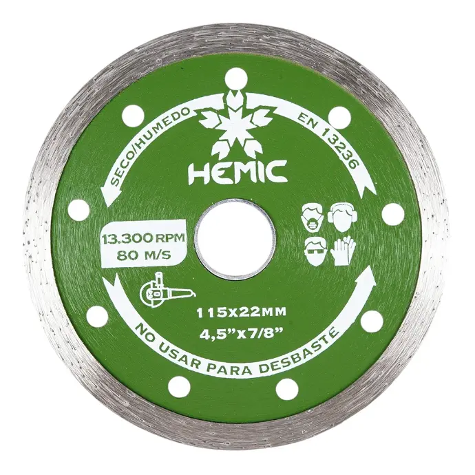 Ofrece máxima precisión en cortes finos, ideal para trabajos delicados donde se requiere una terminación prolija. Su borde cerrado con diamante sintético reduce vibraciones y mejora el acabado, tanto en corte seco como con agua. Disponible en múltiples diámetros para adaptarse a distintos tipos de amoladoras.